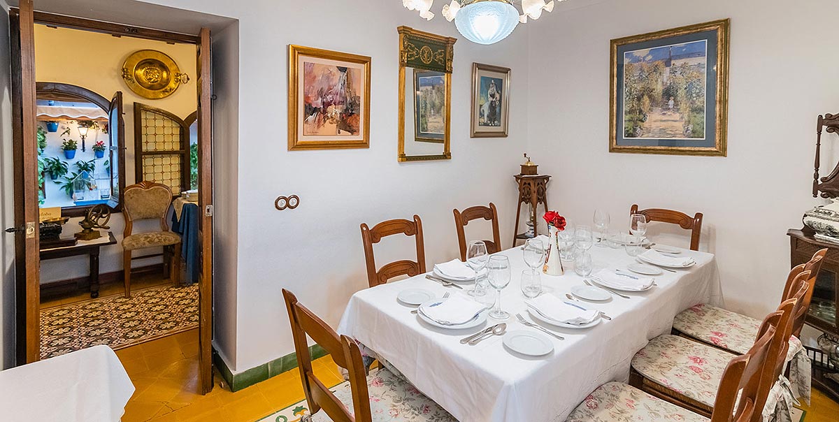 Cocina cordobesa de calidad en una casa patio histórica con salones elegantes y ambiente distinguido.