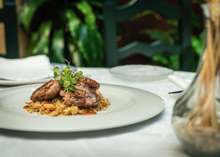 Su cocina es un tributo a la tradición con un enfoque innovador: platos como milhojas de foie con queso de cabra y manzana caramelizada, rodaballo al azafrán con pulpo, confit de pato con frutas silvestres o el premiado postre “Texturas de Pedro Ximénez” forman parte de una carta que respeta los productos de temporada y la excelencia en cada elaboración.