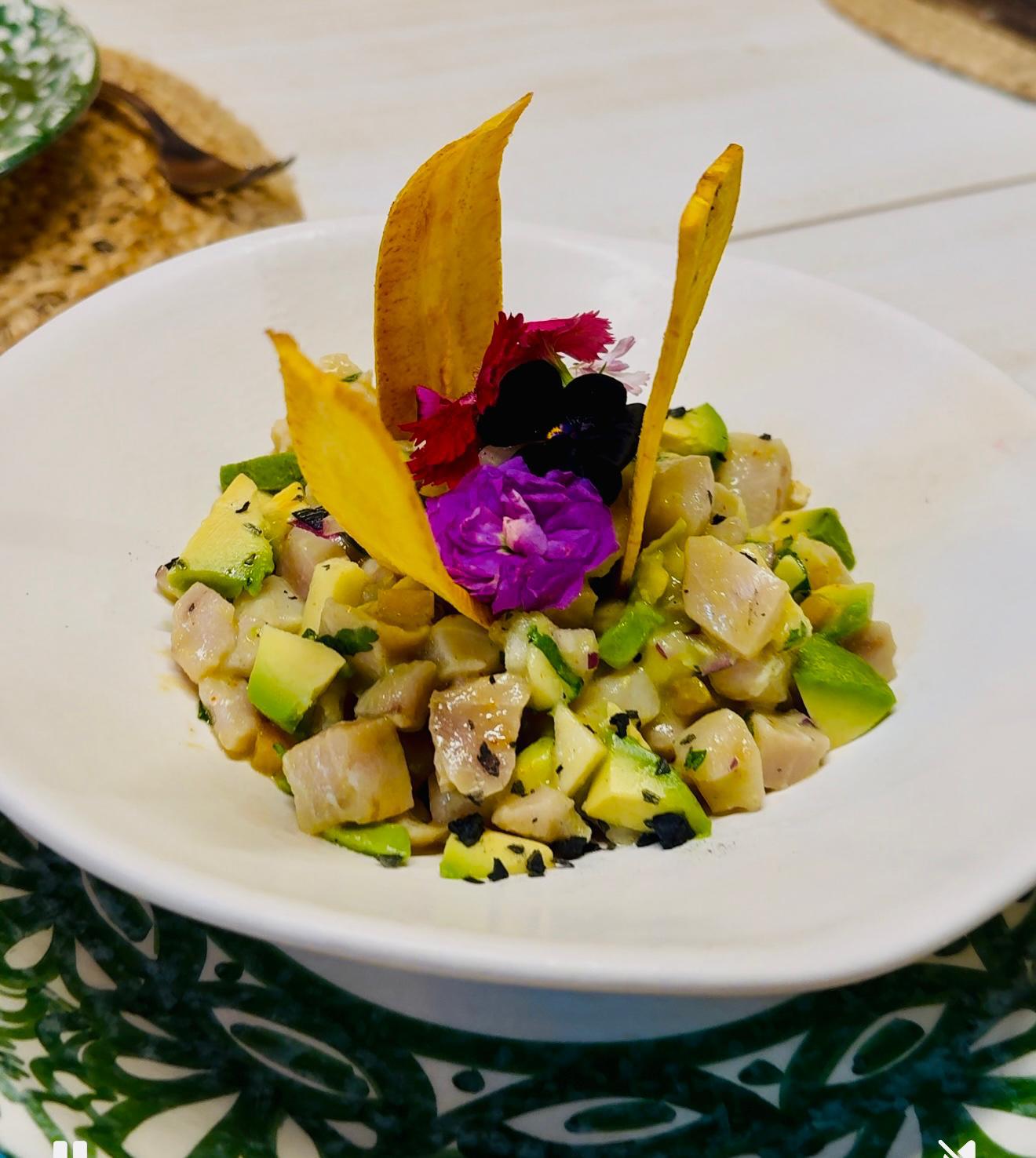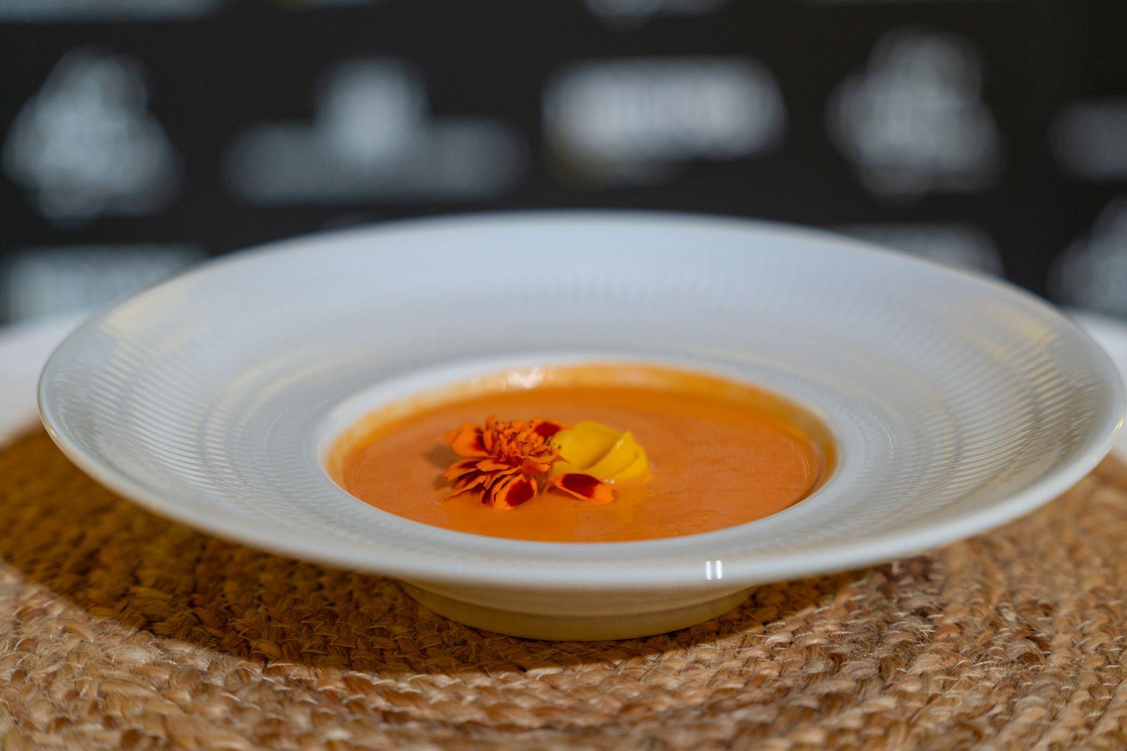 Entre los entrantes destacan clásicos reinterpretados como el salmorejo cordobés con paleta ibérica y huevo duro, su sorprendente versión de salmorejo de mango o la mazamorra de anacardos con queso azul y peras al vino, que aporta un giro innovador a las recetas de siempre. También sobresalen las croquetas de salchichón ibérico, las berenjenas fritas con miel de caña y queso de cabra o el ceviche caribeño de pez espada, que introduce un matiz fresco e internacional.