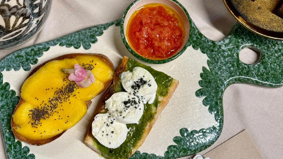 Su carta de brunch incluye una selección cuidada de tostadas gourmet (como la de mango o la de burrata), yogures con fruta fresca, bollería artesanal y opciones saladas que sorprenden por su frescura y presentación. Todo ello acompañado de zumos naturales, café de especialidad y, para quienes buscan un extra, copa de cava.