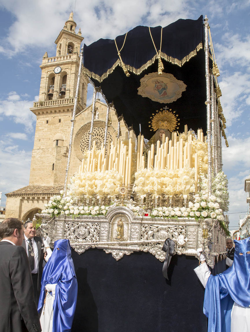 Tras él, bajo palio, procesiona Nuestra Señora de la Piedad, imagen realizada en 1958 por Juan Martínez Cerrillo. Es una Dolorosa que ha mantenido siempre una fuerte vinculación con el estilo y la estética salesiana, tanto en su puesta en escena como en la composición del paso. La Virgen ha sido llevada a hombros por costaleros desde su primera salida en 1959, un dato que habla de la temprana implantación de este modo de cargar en la hermandad.