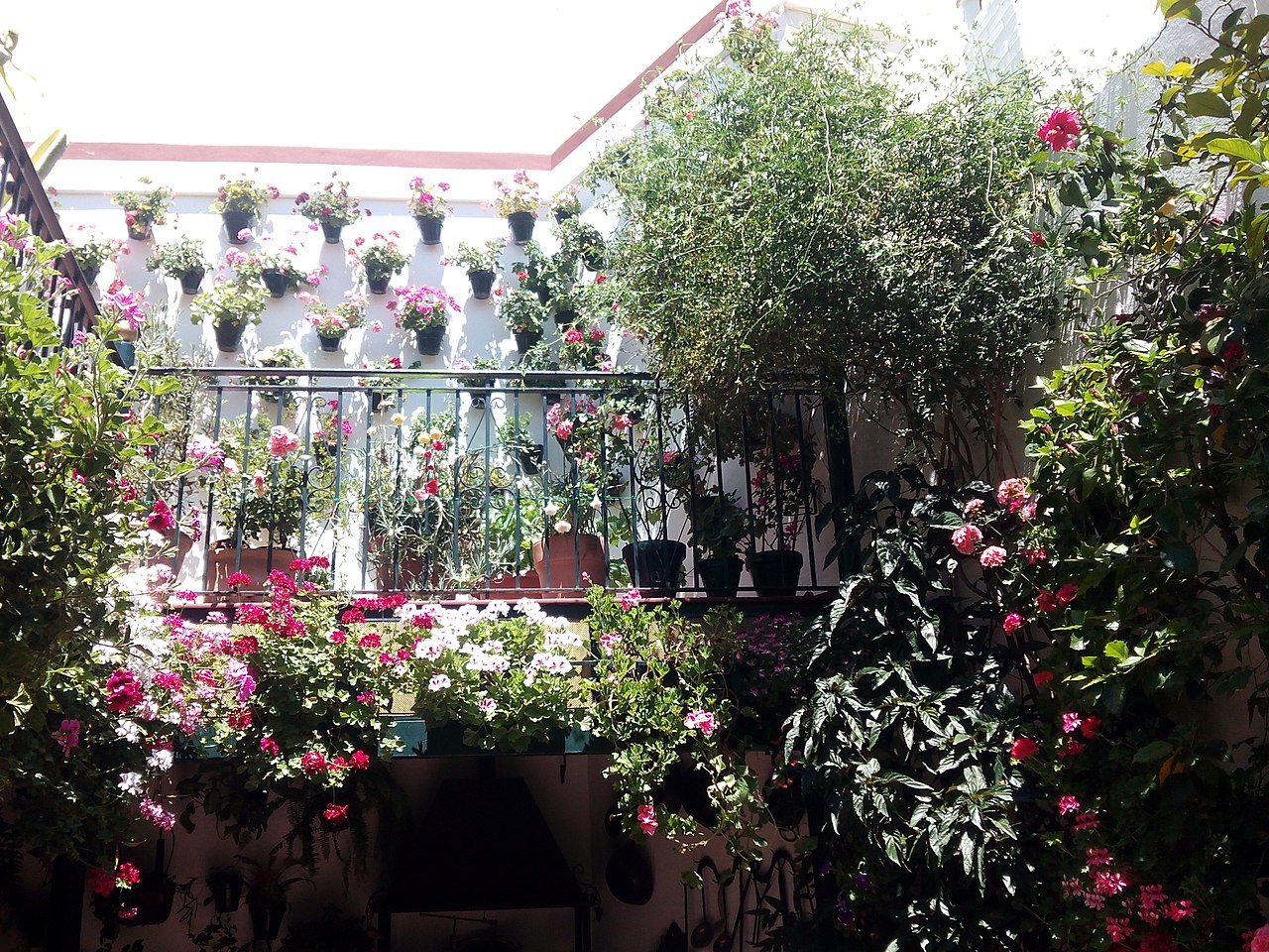 En la era moderna, a partir del siglo XIX, el aumento de la migración urbana llevó a la creación de las «casas de vecinos», donde las antiguas mansiones aristocráticas se transformaron en hogares multifamiliares. Estos patios colectivos incluían escaleras para acceder a plantas superiores, lavaderos comunes y cocinas compartidas. Hoy en día, el patio cordobés típico es un espacio encalado, adornado con macetas de geranios, jazmines, claveles, petunias y rosas, con un pozo central y, a veces, árboles frutales como naranjos o limoneros. Su mantenimiento requiere un esfuerzo constante por parte de los vecinos, que invierten tiempo y recursos para preservar esta tradición.