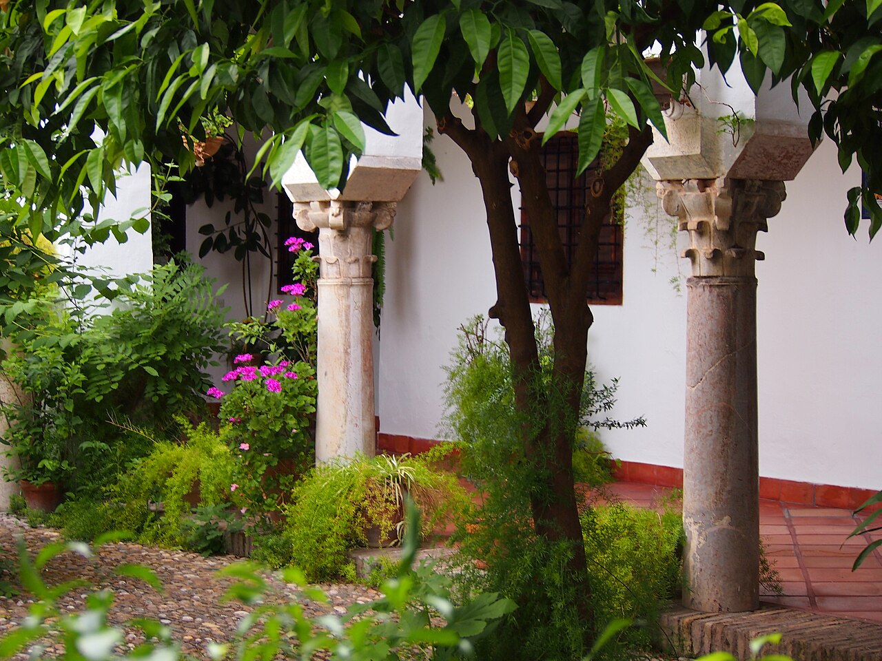 Con la llegada de los árabes en el siglo VIII, los patios evolucionaron incorporando elementos como los «riats» (arriates o jardineras) con fuentes y pozos, que no solo refrescaban el ambiente en el caluroso clima andaluz, sino que también añadían un toque estético con flores y agua corriente. Durante la Edad Media, esta tradición se mantuvo tanto en viviendas residenciales como en edificios religiosos, adaptándose a las necesidades de la población.