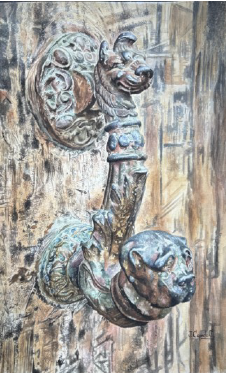 Las obras de Juan Copado Cebrián se caracterizan principalmente por el uso de técnicas como la acuarela y el dibujo, y muchas de ellas se realizan por encargo y muestran temáticas locales. Entre sus series más conocidas destaca la “Serie Aldabas de Córdoba”, en la que retrata, a través de acuarelas de diferentes dimensiones, detalles arquitectónicos y ornamentales de la ciudad, como aldabas y elementos patrimoniales, mostrando una sensibilidad especial hacia la tradición y la cultura local.